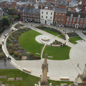 The design for Cathedral Green involved removal of the previously dominant car parking to provide a multifunctional public space and fitting setting for the cathedral as well as improving access to the great west door. The project involved working closely with the Cathedral Architect, Archaeologist, local authority officers and both lay staff and clergy at the Cathedral.